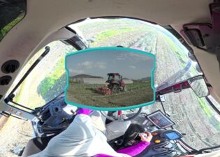 一つ目のスマート農業技術は「自動運転トラクター」です。トラクターがGPSの位置情報を読み取って、ハンドルを自動で操作してくれます。これまで4日間かかっていた作業を2日間でできるようになり、作業日数の削減につながっています。