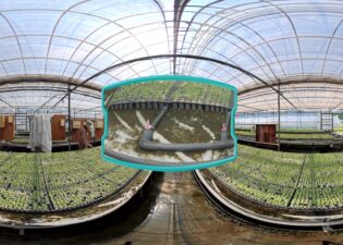 二つ目のスマート農業技術は自動での水やりです。ビニールハウスで育てているたくさんのキャベツの苗への水やりは、スタートボタンを押すだけ。すると水が、配管を通って、苗の下に敷かれた敷布にしみ込み、鉢の底から直接根に吸収されていく仕組みです。追い水やりも必要ですが、これまで2~3人必要だった作業を1~2人でできるようになり、作業労力の削減につながっています。また、根から必要な分だけ水を吸収するため、水のやりすぎや水不足を防ぐことができ、キャベツにとってもやさしい技術です。