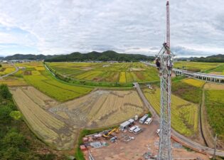 組み上げ始めてから5日で完成した鉄塔の高さは、なんと約35m。これでも鉄塔の中では低いほうで、高さ143mもの鉄塔を建設することもあるそうです。建設現場で働く人たちの安全を意識した丁寧な仕事のおかげで、わたしたちは安心して電気や電波を使うことができるのです。